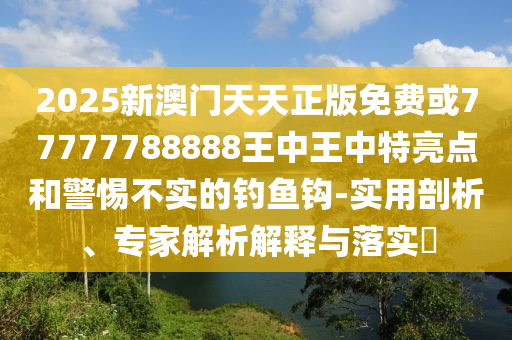 關(guān)于關(guān)鍵詞“新澳門天天正版免費(fèi)”、“77777788888王中王中特亮點(diǎn)實用剖析”、“專家解析解釋與落實”以及“警惕不實的釣魚鉤”的全面釋義、專家解讀與落實、警惕虛假宣傳等方面的解析如下: