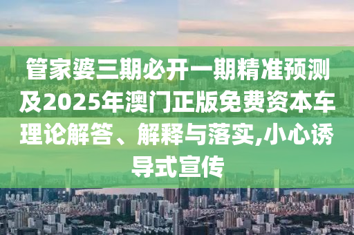 關(guān)于管家婆三期必開一期精準(zhǔn)預(yù)測及澳門正版免費資本車的宣傳警惕與理論解答、解釋與落實