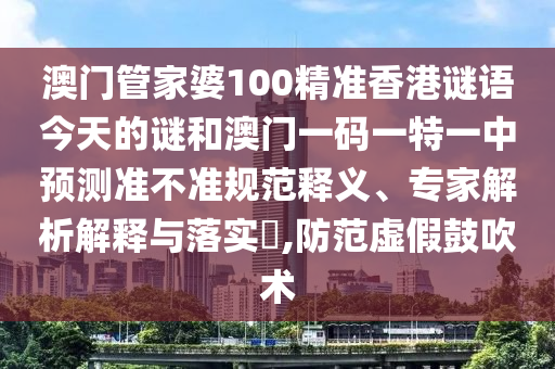 關于澳門管家婆100精準香港謎語今天的謎和澳門一碼一特一中預測準不準的規(guī)范釋義、專家解析解釋與落實防范虛假宣傳的解析