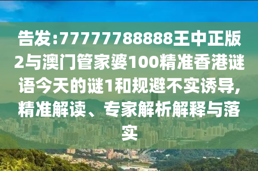 告發(fā):77777788888王中正版2與澳門管家婆100精準(zhǔn)香港謎語今天的謎1和規(guī)避不實誘導(dǎo),精準(zhǔn)解讀、專家解析解釋與落實