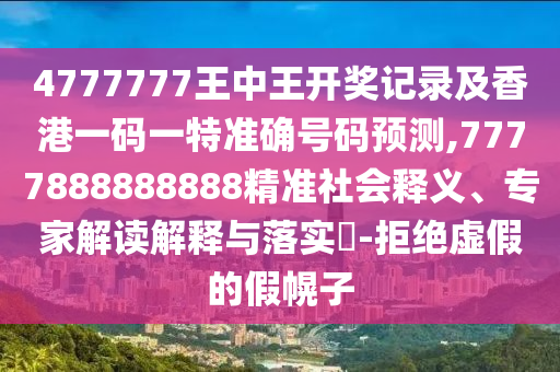 4777777王中王開獎記錄及香港一碼一特準(zhǔn)確號碼預(yù)測,7777888888888精準(zhǔn)”的社會釋義、專家解讀與落實,以及拒絕虛假宣傳的探討
