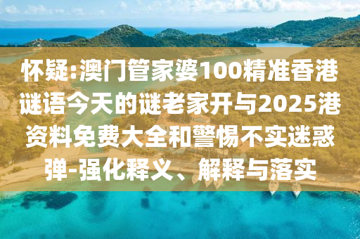 懷疑:澳門管家婆100精準香港謎語今天的謎老家開與2025港資料免費大全和警惕不實迷惑彈-強化釋義、解釋與落實