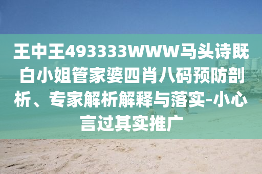 王中王493333WWW馬頭詩既白小姐管家婆四肖八碼的預防剖析、專家解析解釋與落實