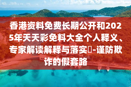 香港資料免費長期公開和2025年天天彩免料大全”的個人釋義、專家解讀與落實,以及謹防欺詐的假套路