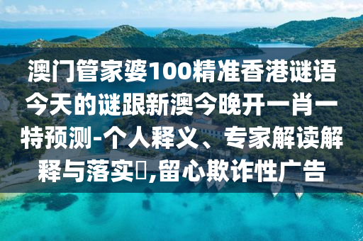 澳門管家婆100精準(zhǔn)、香港謎語、新澳今晚開一肖一特等關(guān)鍵詞涉及的是預(yù)測(cè)、游戲等領(lǐng)域的內(nèi)容,在日常生活中,我們應(yīng)當(dāng)全面理解這些概念,同時(shí)警惕與之相關(guān)的欺詐性廣告,以下是從全面釋義、專家解讀與落實(shí)、警惕虛假宣傳等方面進(jìn)行的解析描述。