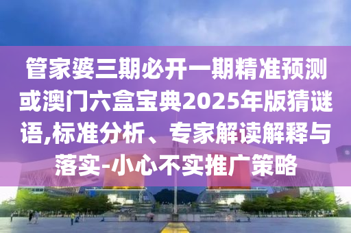 管家婆三期必開一期精準預測或澳門六盒寶典2025年版猜謎語,標準分析、專家解讀解釋與落實-小心不實推廣策略