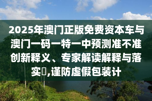 2025年澳門正版免費(fèi)資本車與澳門一碼一特一中預(yù)測(cè)準(zhǔn)不準(zhǔn)的謹(jǐn)防虛假包裝計(jì)”的創(chuàng)新釋義、專家解讀解釋與落實(shí)