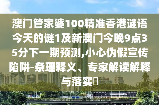 澳門管家婆100精準香港謎語今天的謎1及新澳門今晚9點35分下一期預(yù)測:條理釋義、專家解讀解釋與落實?