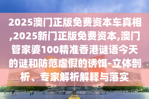 2025澳門正版免費資本車真相,2025新門正版免費資本,澳門管家婆100精準香港謎語今天的謎的立體剖析、專家解析解釋與落實